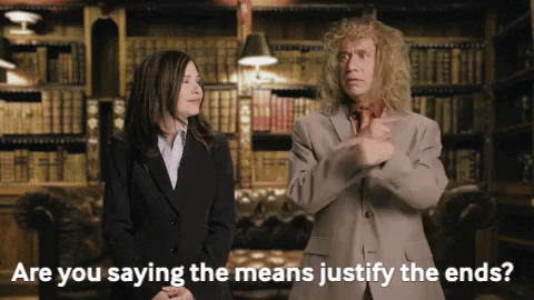 Niccolò Machiavelli is credited with coining the phrase, “the ends justify the means,” though Eoin O’Carroll points out that it’s more a paraphrase than a direct quote. The Italian politico-philosopher used it in reference to conquest. In short, use questionable means to achieve positive outcomes. 🫤