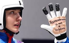The International Olympic Committee disqualified Ukraine’s Vladyslav Heraskevych from competing in something called skeleton, where athletes are on sleds face down 😳, deeming his helmet, which displayed images of Ukrainian athletes who have died in Russia’s war of aggression, as “political speech.” To which his fellow Ukrainian teammates responded: